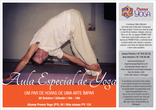 Informações/inscrições: 919195035 (Joana Pereira) / 917768208 (Ana Pereira) / mypremayoga@gmail.com