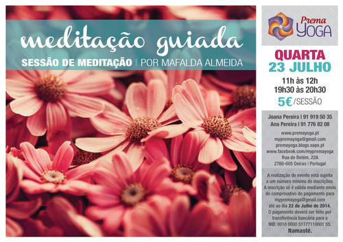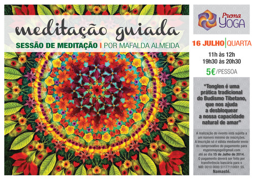 Nota: A realização do evento está sujeito a um número mínimo de inscrições. A inscrição só é válida mediante pagamento por transferência bancária para o NIB - 0010 0000 51177110001 55 e envio do respectivo comprovativo para mypremayoga@gmail.com até ao dia 29 de Julho de 2014.